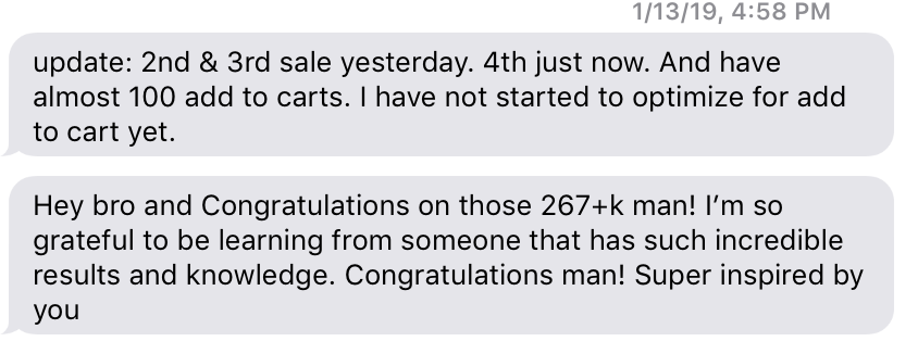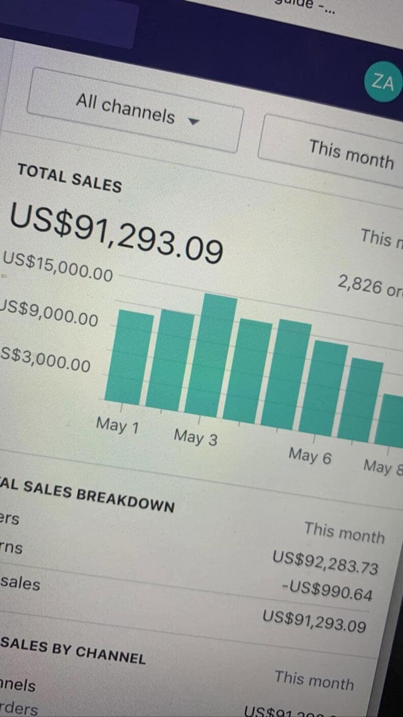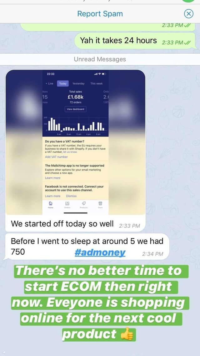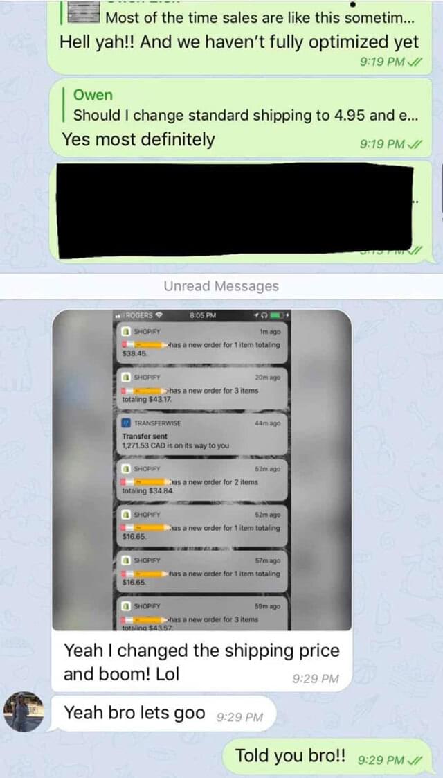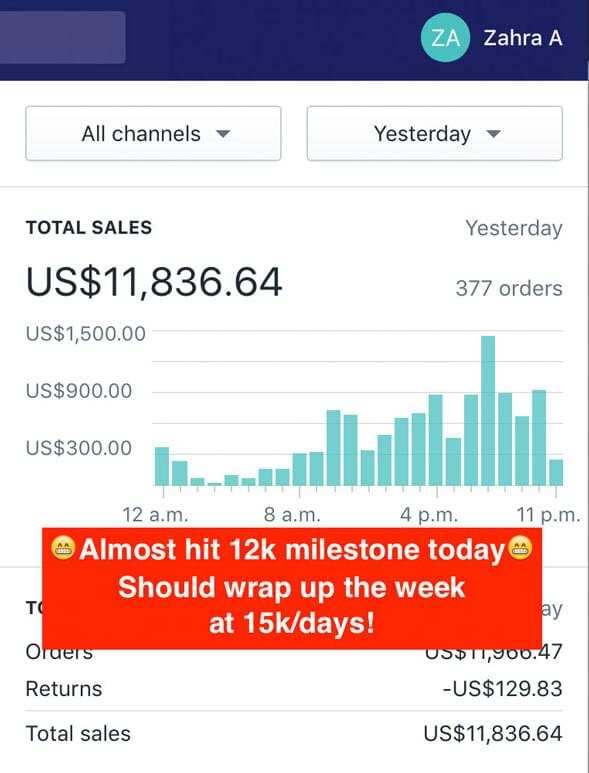 Dylan - "Launched my 1st ecom store with Zahra and got sales on the 3rd day in which I was super excited as I never got a sale before. Before I met him I launched my stores 2 other times and lost $300 with no sales. It was a great feeling after-all."