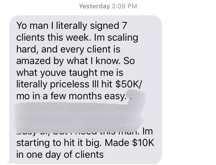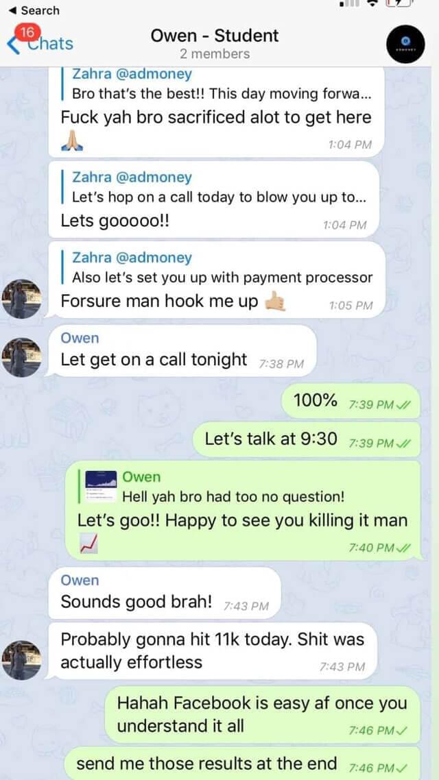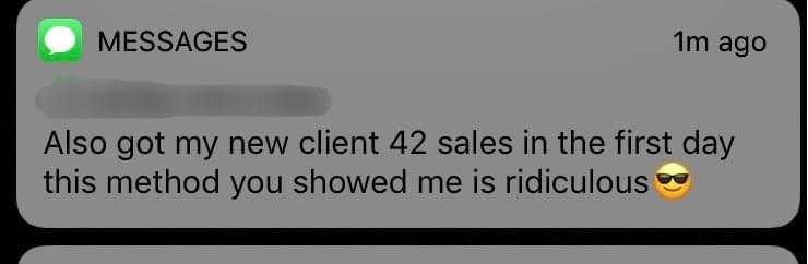 Adam - "Agency owner, got one of my clients 42 sales today. Zahra showed me this new method I have never heard of in my life.