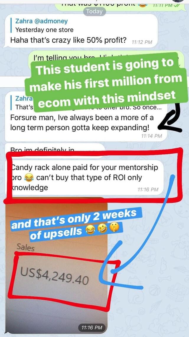 Owen - "Zahra thank you! My upsells alone paid for the coaching program. Your upsell COV method works. Never really got sales with upsells before as I didn't know the psychology of why a consumer would add something to the order."