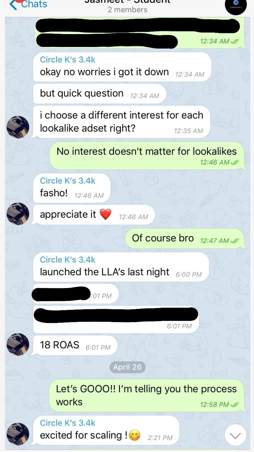 Jasmeet - "Launched ads for the 1st time ever and I hit 18 ROAS learning the B.A.N.G strategy for micro-budgeting"