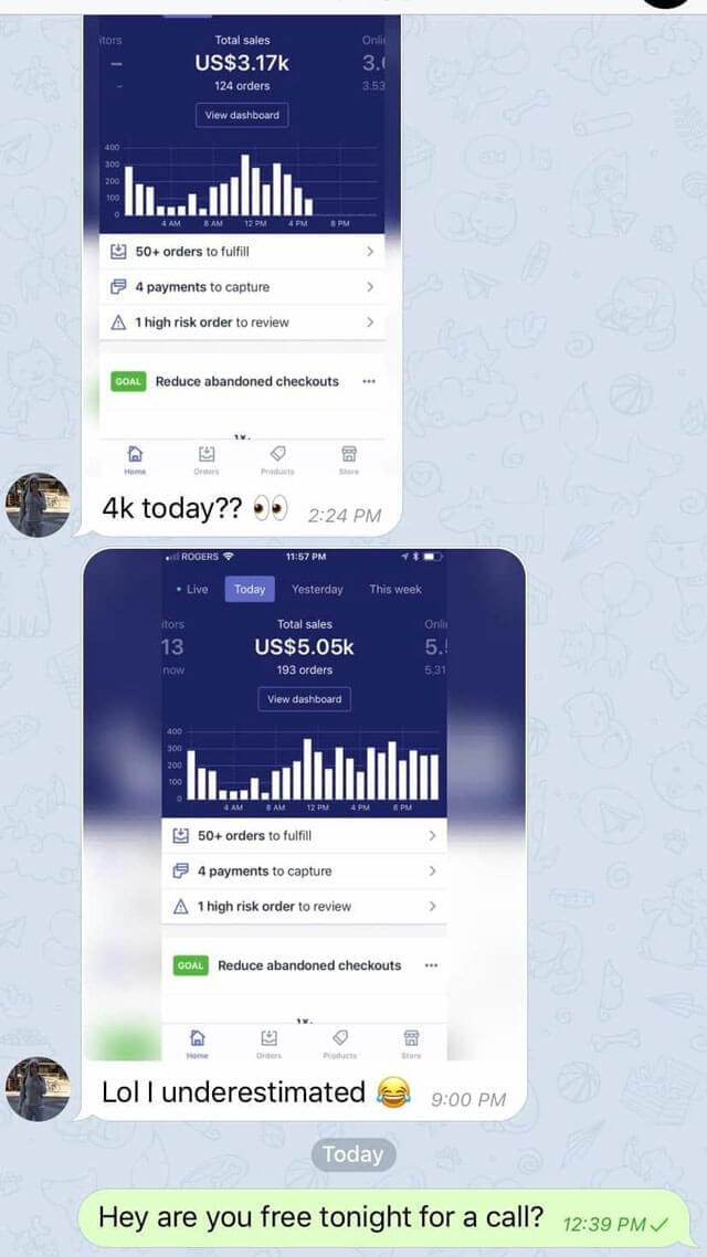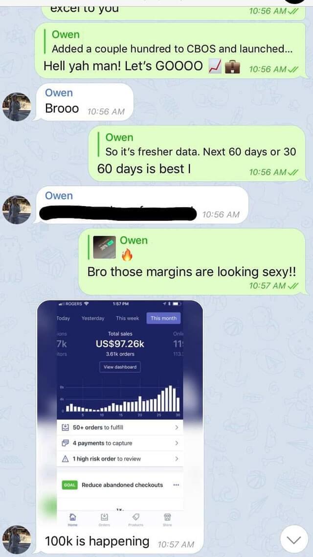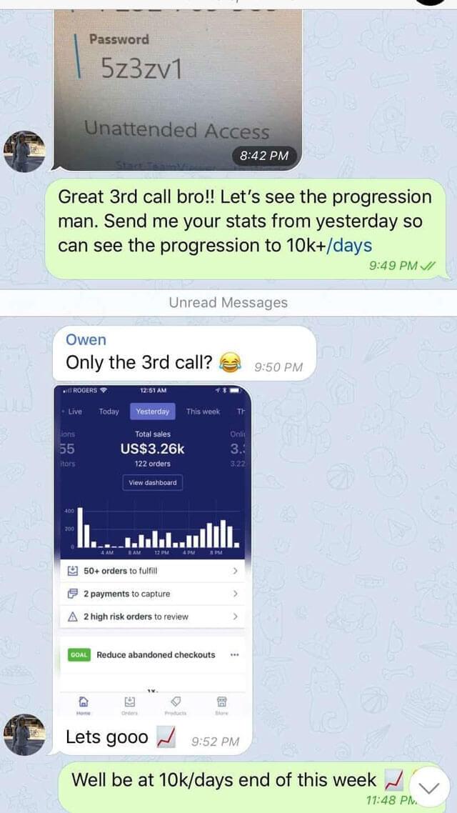 Owen - He was struggling to get past 1k/days before he joined... on the 3rd call we hit over 3k with his store!