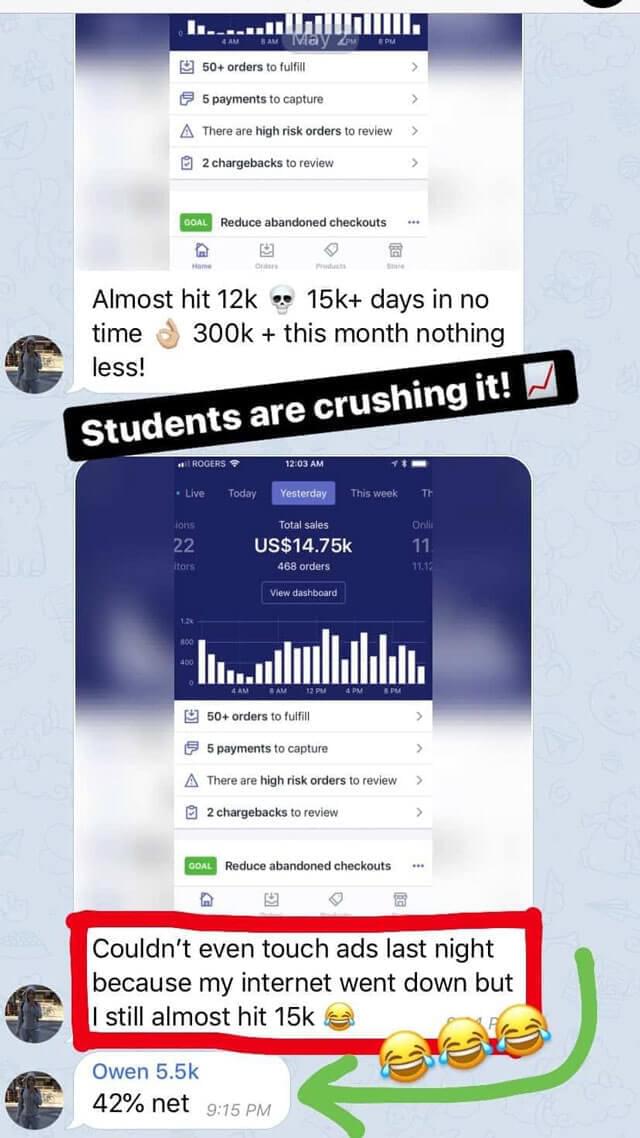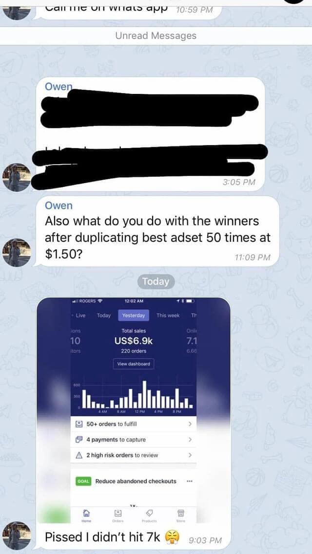 Owen - Almost scaled ads to 15k/day keeping profit margins above 40%. If his internet didn't get shot would of been a bigger day lol